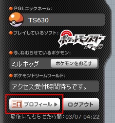 ②PGLの最初の画面の左に表示されている「プロフィール」をクリック。